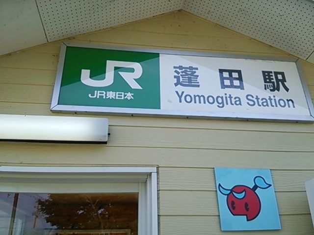 蓬田駅にも、マスコットキャラクターのヨモットくんがいました。