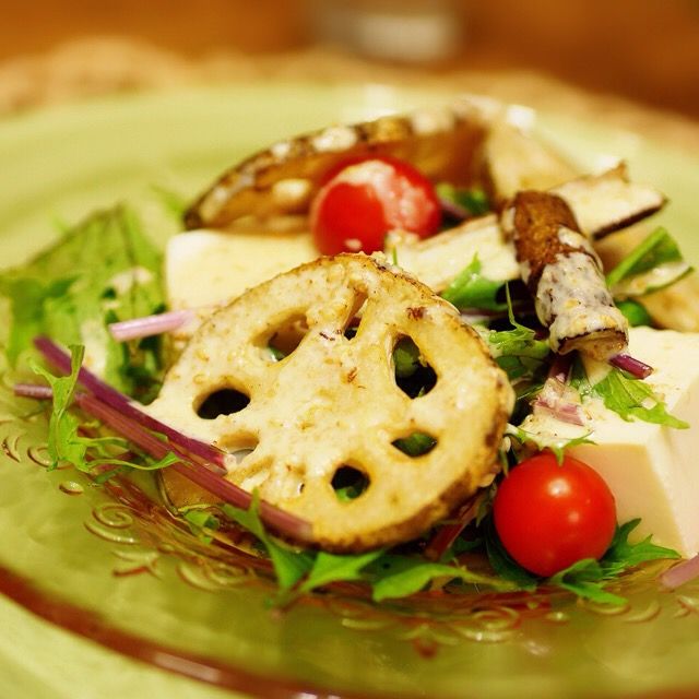 レンコンとごぼうのお豆腐サラダ