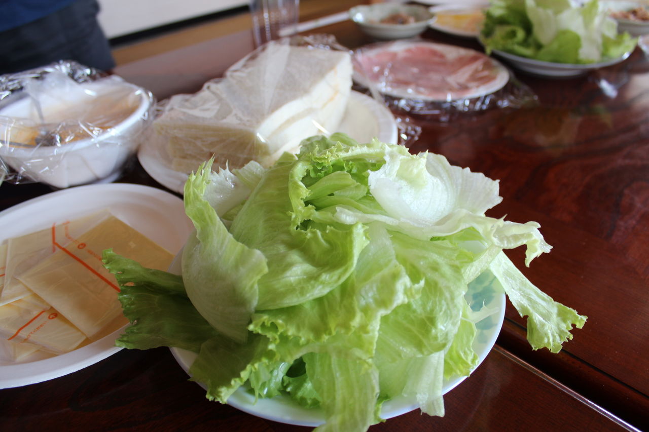 レタスにチーズと卵をのせてガブリ。