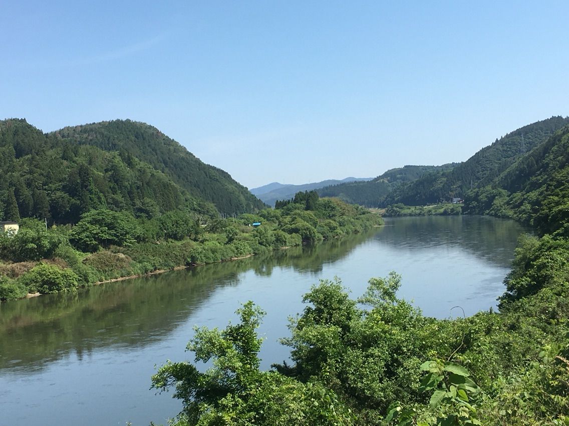 一関市中心部より滔々と流れる北上川を