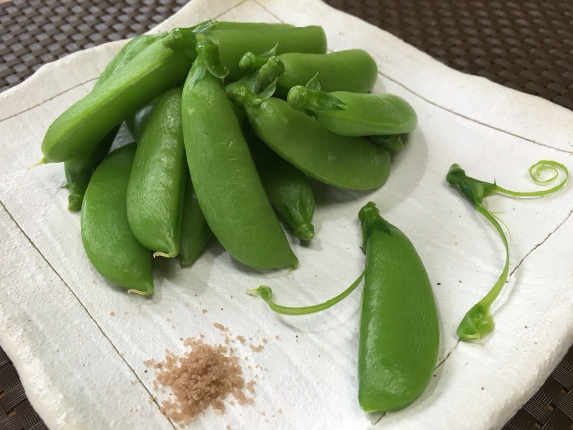 今日はえんどう豆の仲間、莢も実も