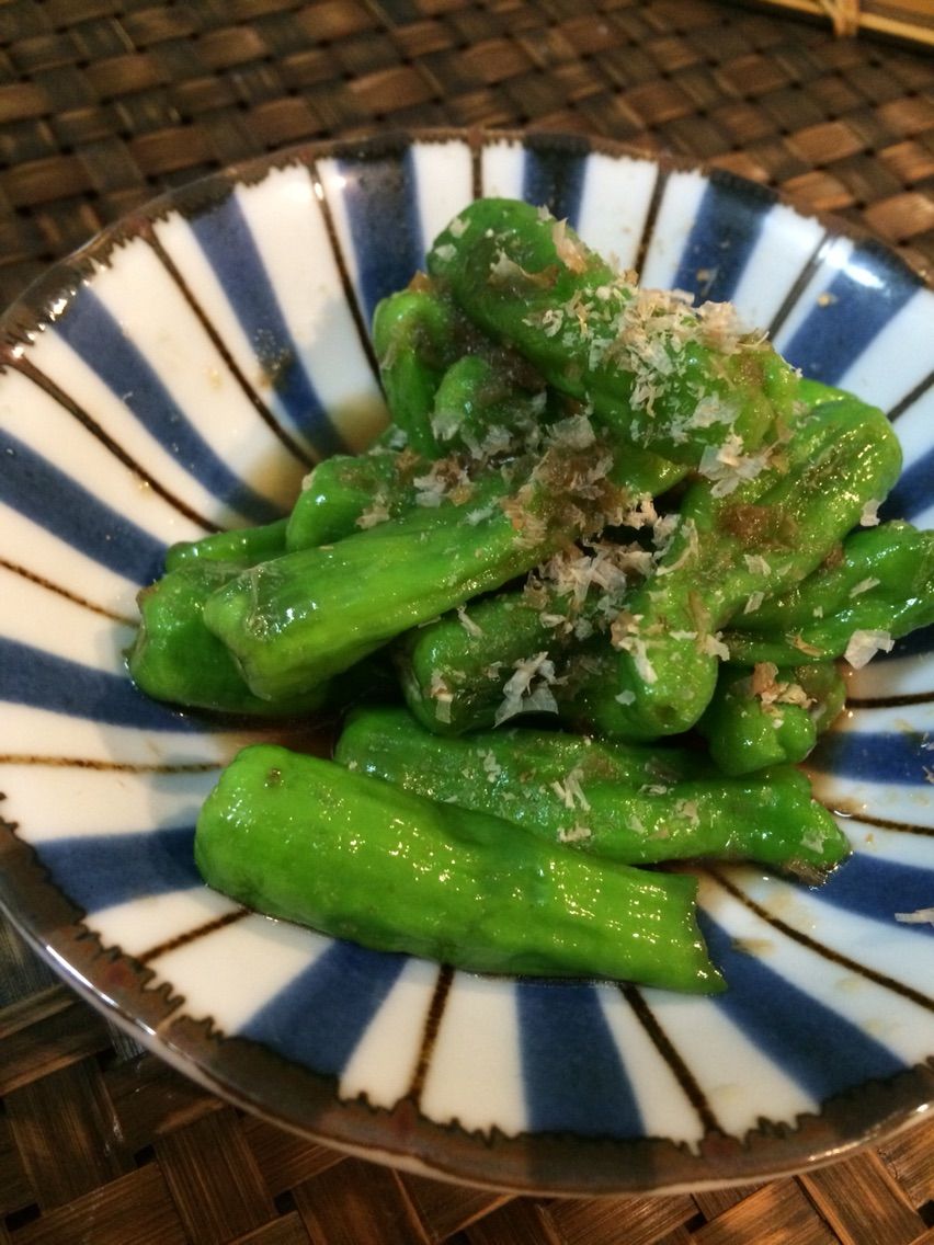 秋田県産のししとうを甘辛炒めで。