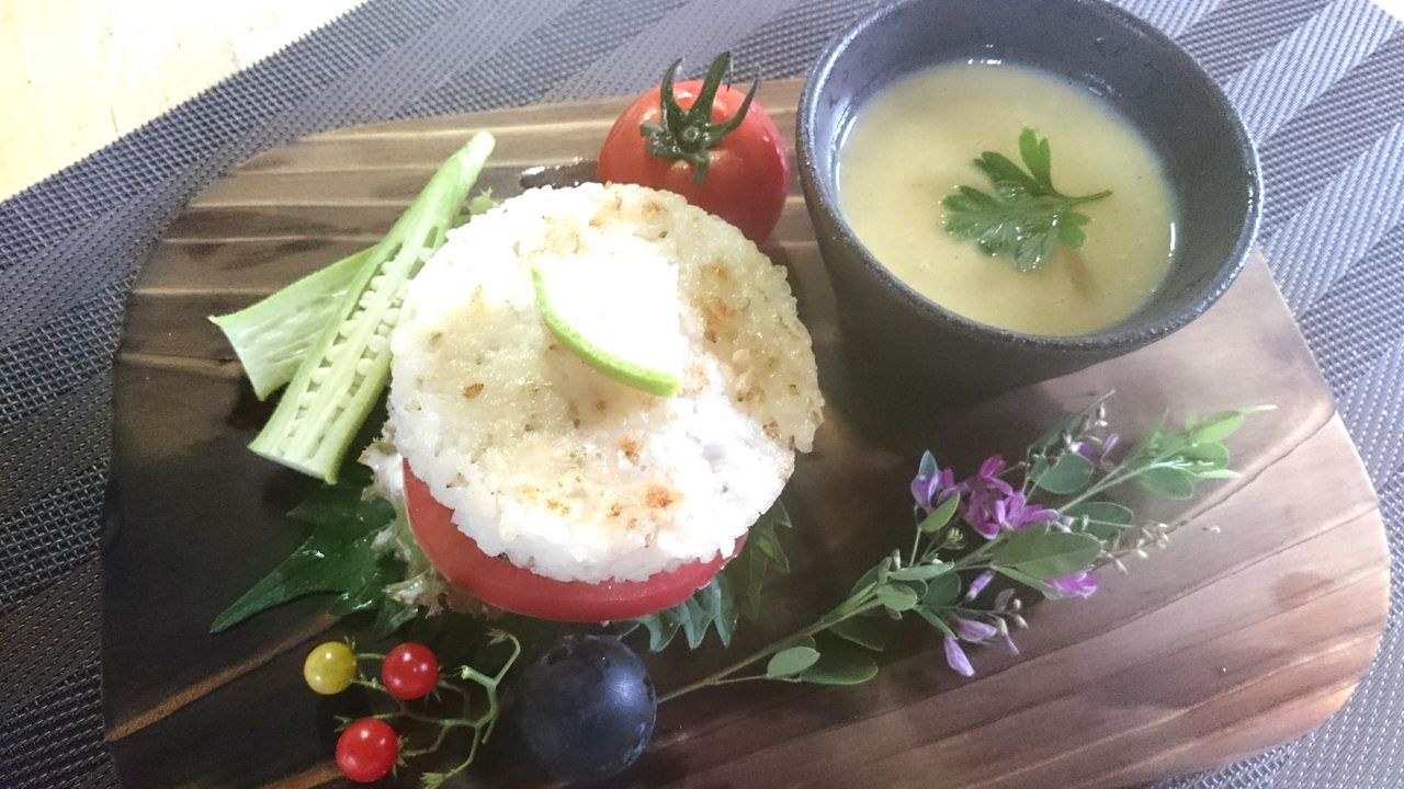 ・ご飯にごまと塩と片栗粉を混ぜて、