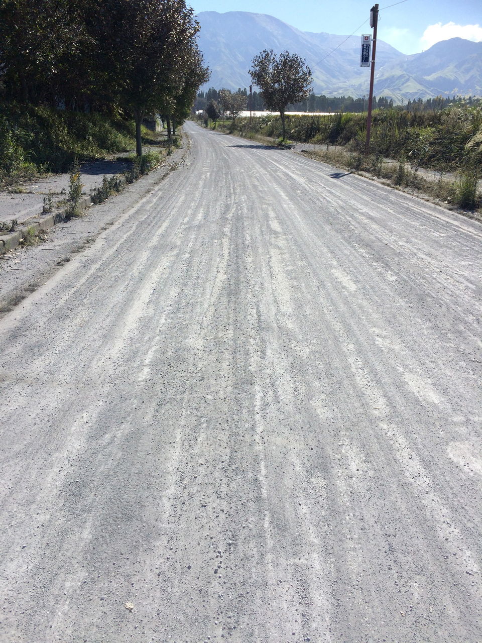 車が走ると灰が舞い、