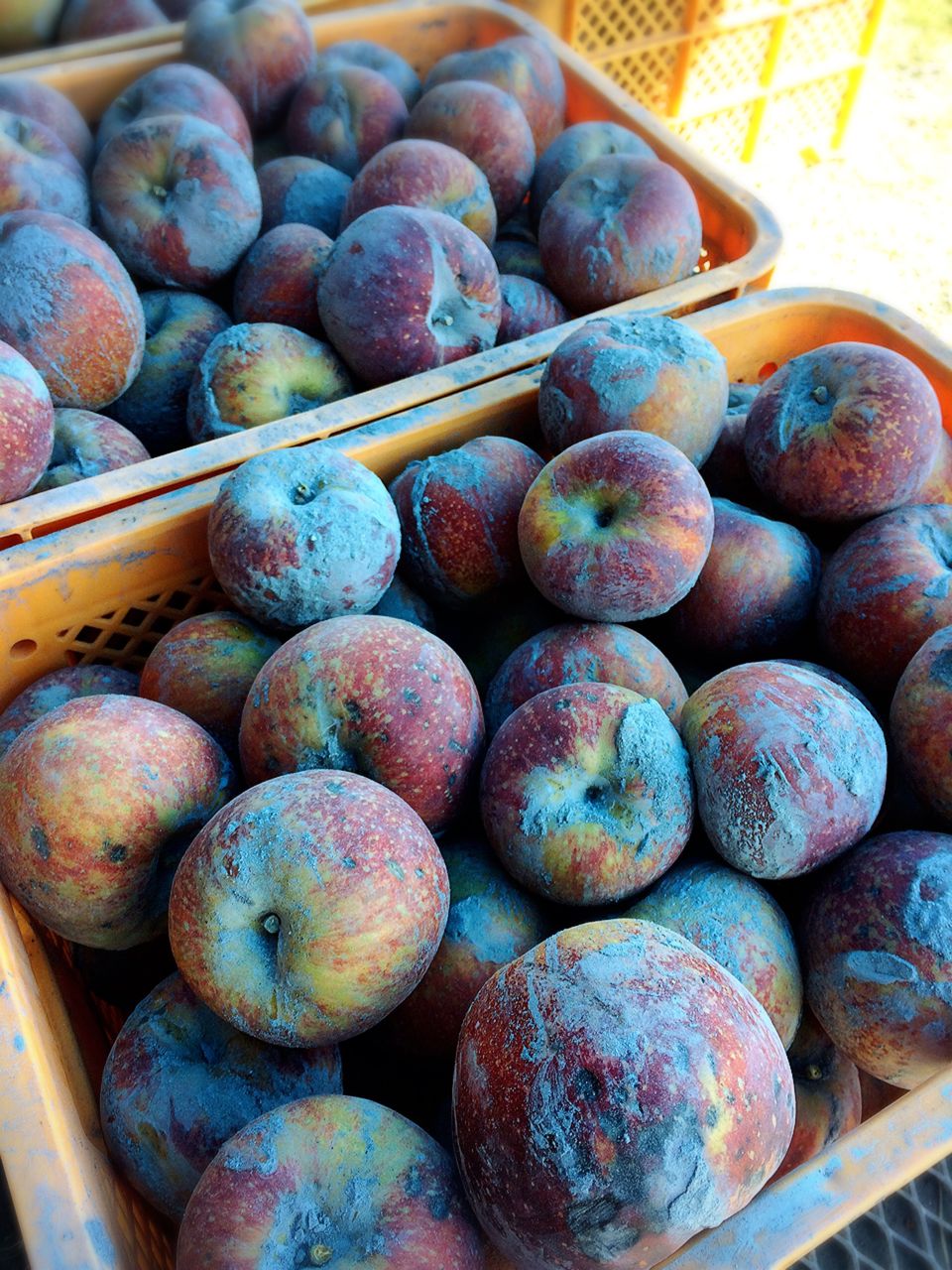 灰にまみれた大量のリンゴ!