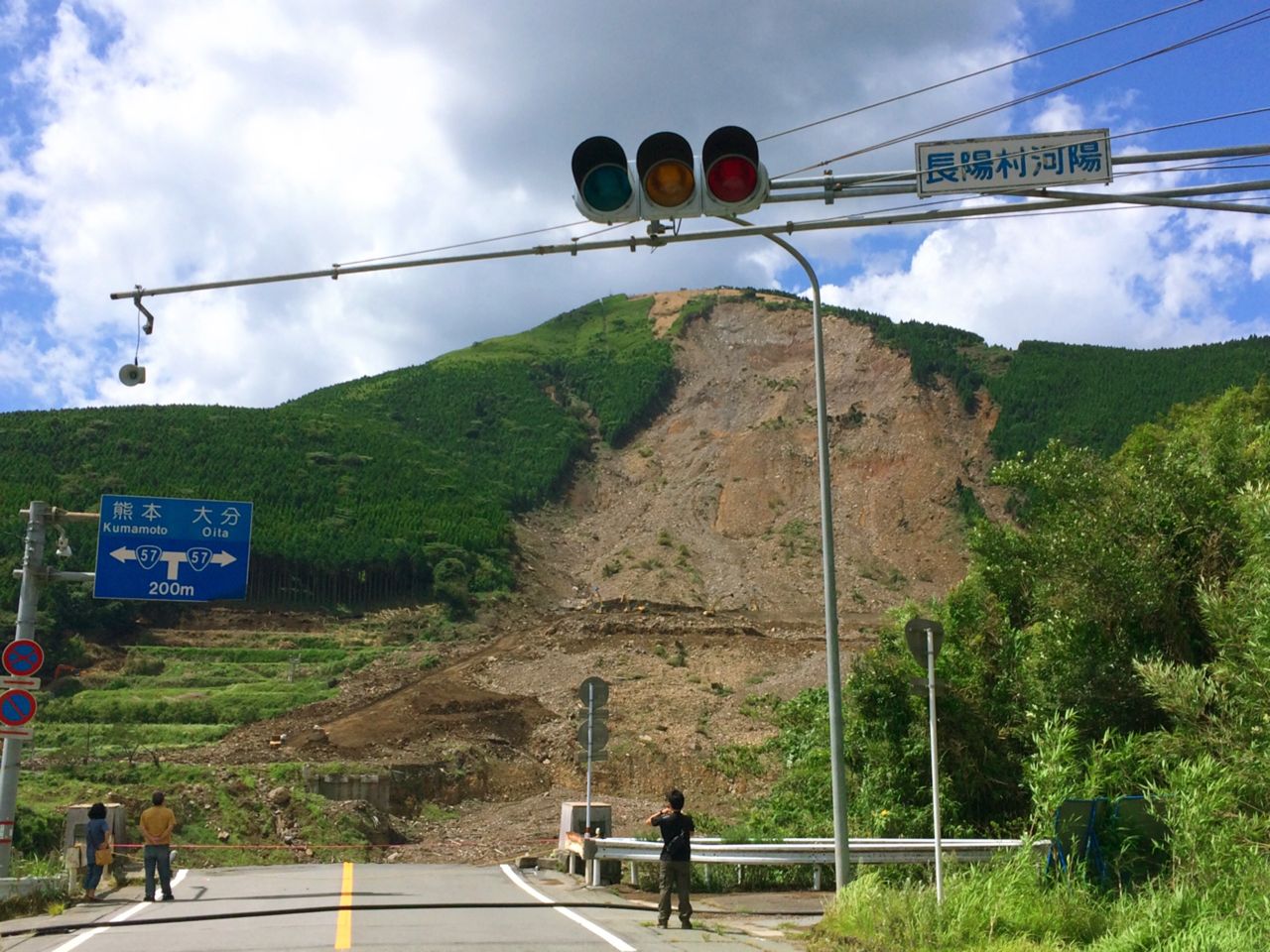 熊本地震により、土砂崩れが起き、