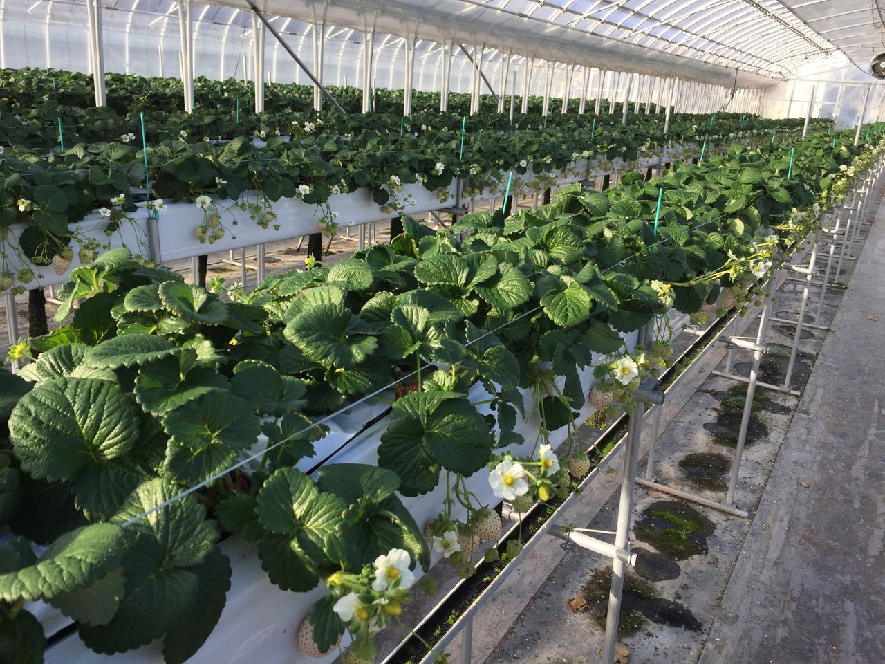 新規就農でイチゴを育てられる場合はほぼ高設の水耕栽培です。管理・収穫の負担が格段にラクだということです。