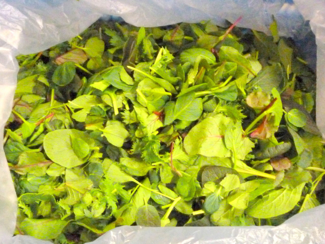 ミックスされたベビーリーフは一旦冷やし込され